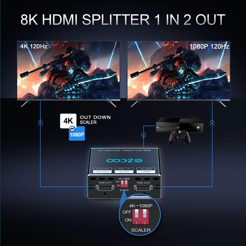 If you're searching for the best 4K HDMI splitter, the EZCOO HDMI 2.1 splitter is the ultimate choice. Built for cutting-edge resolutions and refresh rates, it ensures seamless video distribution and exceptional performance.Perfect for gamers, movie enthusiasts, and professionals alike, this splitter is designed to deliver an exceptional viewing experience. It supports flawless 4K resolution, ensuring every detail is crisp and clear, along with ultra-fast refresh rates for smooth, lag-free performance. Whether you’re diving into the latest video games, enjoying a cinematic movie night, or tackling demanding professional tasks, this splitter guarantees reliable performance. It's also fully compatible with the latest devices, making it a future-ready solution that combines superior quality with unmatched versatility for all your entertainment and work needs.